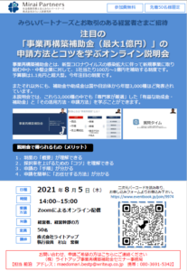 8/5(木)「事業再構築補助金」セミナーのご案内