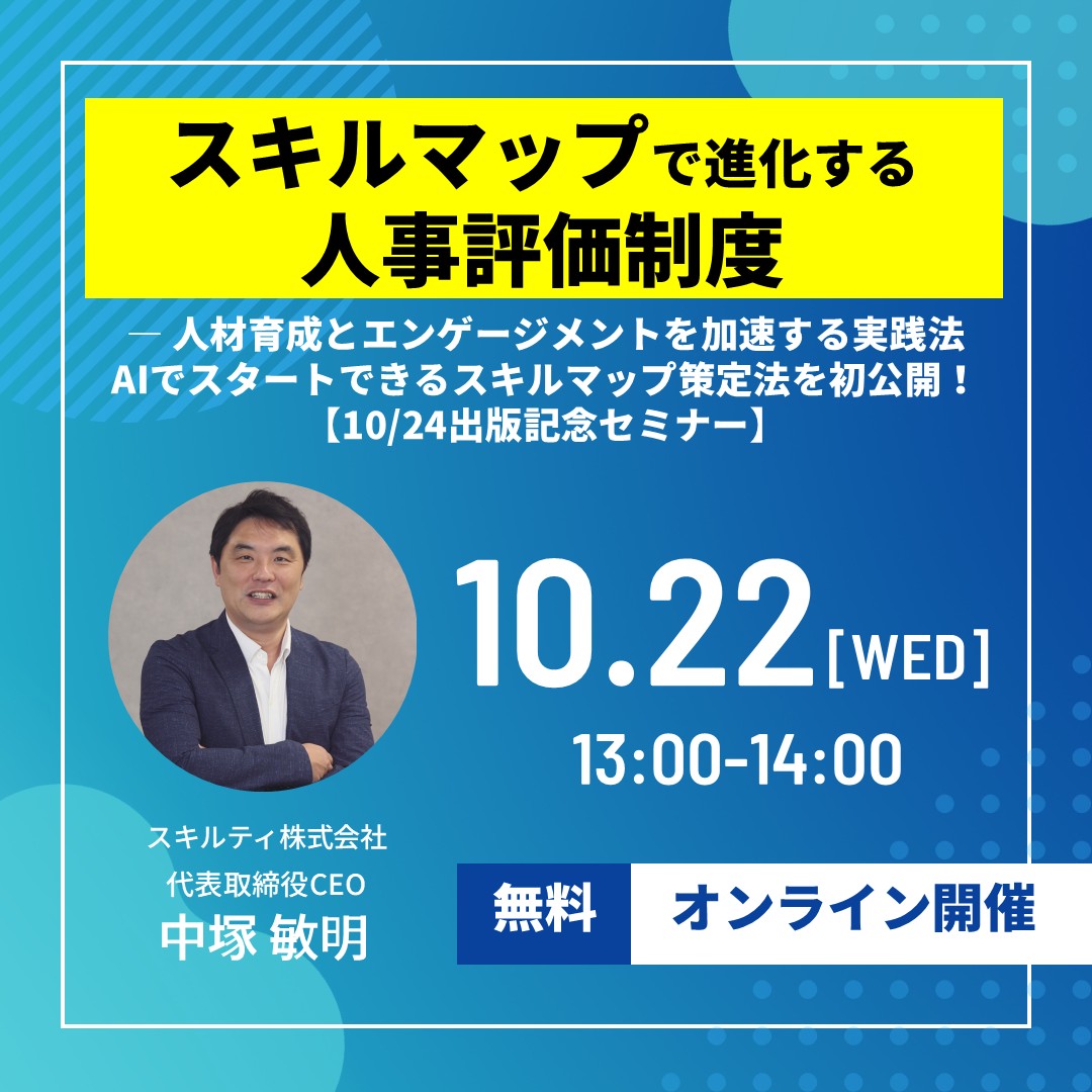 10/22開催!【ウェビナー】スキルマップで進化する人事評価制度 ― 人材育成とエンゲージメントを加速する実践法 AIでスタートできるスキルマップ策定法を初公開! <10/24出版記念セミナー>