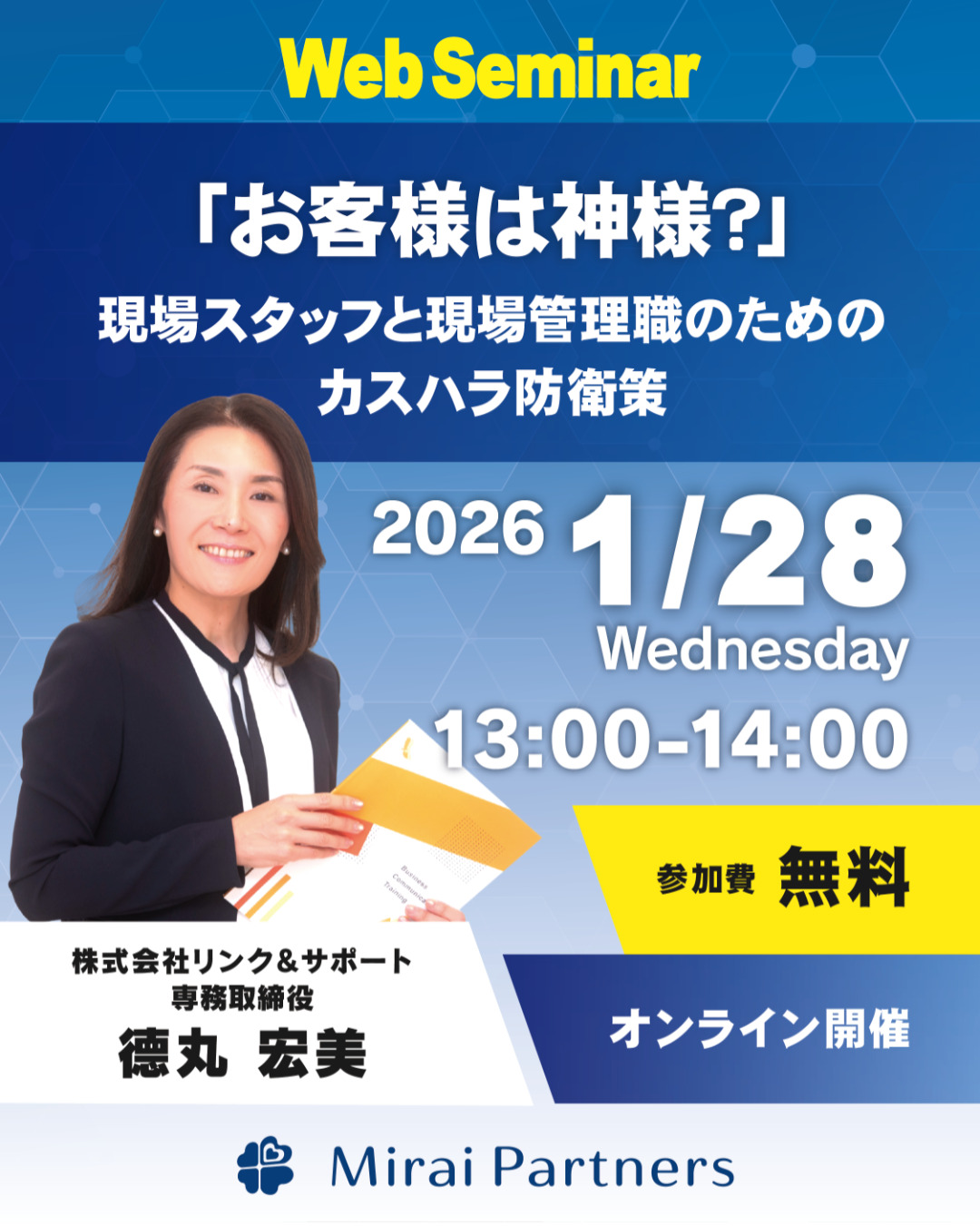 1/28開催!【ウェビナー】「お客様は神様?」〜現場スタッフと現場管理職のためのカスハラ防衛策〜